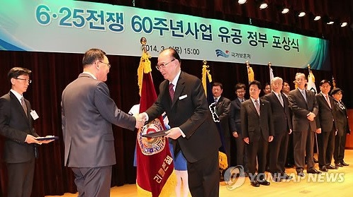 [연합뉴스]정총리, '6·25전쟁 60주년 사업' 유공자 포상 6·25전쟁 60주년사업 유공 정부 포상식 (서울=연합뉴스) 백승렬 기자 = 정홍원 국무총리가 6일 정부서...