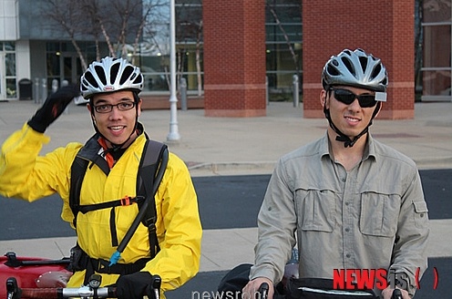 【서울=뉴시스】유세진 기자 = 종교가 다르다는 이유로 일본에서 자행된 조직적인 납치 감금 행위에 항의하고 피해자를 돕기 위한 기금 마련을 위해 두 명의 미국 대학생이 자전거로 대륙 횡...